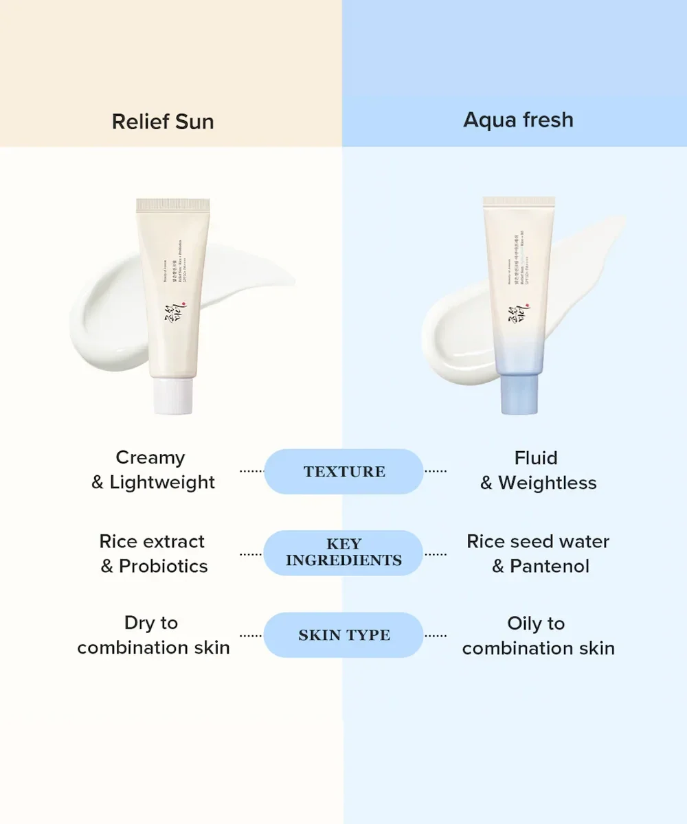 Die Beauty of Joseon Relief Sun Aqua Fresh Rice B5 SPF50+ PA++++ ist perfekt, um Ihre Haut jeden Tag mit Feuchtigkeit zu versorgen, zu schützen und ihr einen strahlenden Teint zu verleihen.